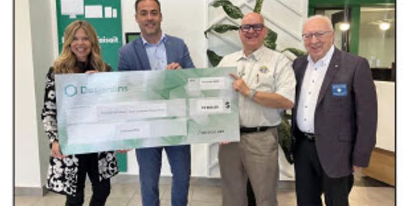 Le 14 octobre, la remise du premier chèque de 10 000 $ s’est tenue au siège social de la Caisse en présence de madame Isabelle Chalifoux, adjointe à la direction générale, monsieur Marc-André Lachance, directeur général, Jean Bisson, grand chevalier et Jean-Claude Dufour, relationniste conseil 1813.
