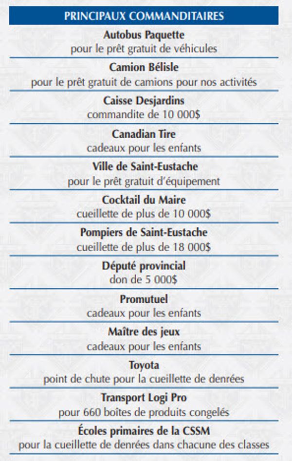 Au moment d’aller sous presse, nous avons environ 625 familles qui recevront des paniers de Noël. Nous complèterons le bilan de la Guignolée 2025 dans l’édition du Câble de février. Cependant, nous souhaitons dès maintenant remercier nos principaux et très précieux commanditaires. Un grand merci également aux nombreux bénévoles qui n’ont pas compté leurs heures pour que cette activité soit couronnée de succès.